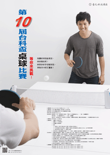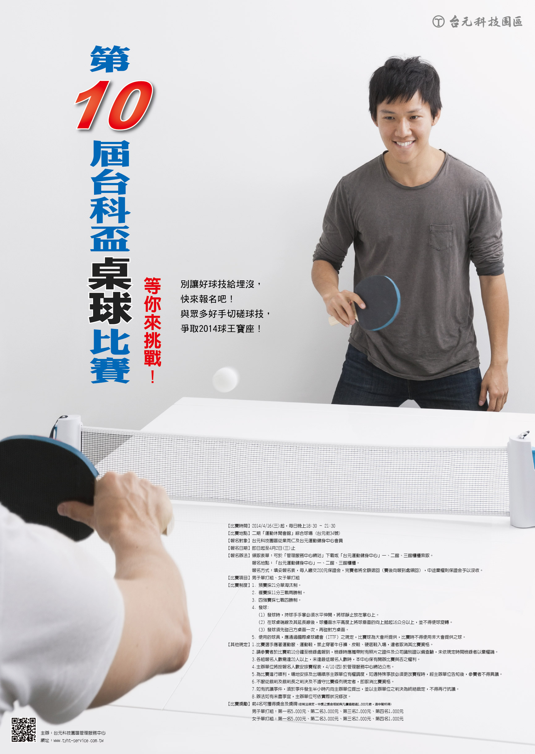 伴隨園區成長的桌球錦標賽己堂堂邁入第10屆,集結園區內外之各路好手一塊爭取榮譽,隨著賽程推進,戰況也逐漸升溫,讓一旁觀眾屏氣凝神觀賽,直待種子選手黃通綱衛冕成功。