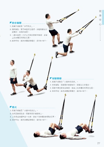 3. 一腳向後跨一大步並下蹲至雙膝呈90度,接著