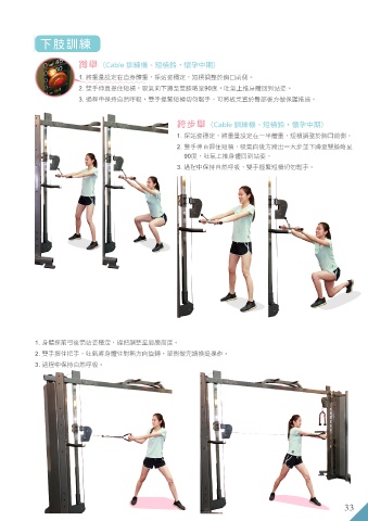 1. 身體採前弓後箭站姿穩定d握把調整至肩膀高度f